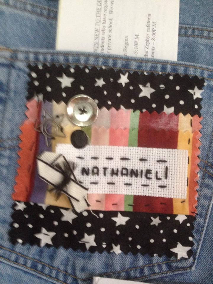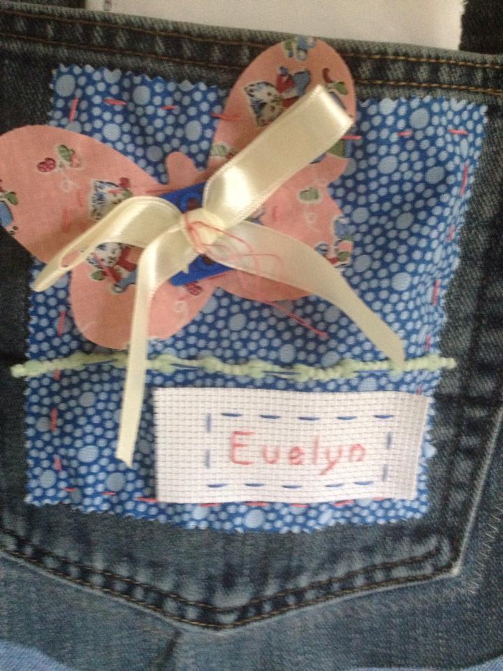So I designed this denim pocket organizer out of two pairs of my husband’s old pants. I wanted to finish the project quickly and give it a scrappy look so I did aim for finished edges.